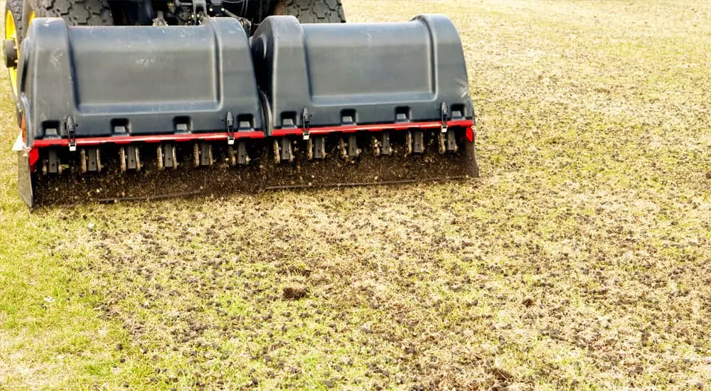 Core aeration, also known as mechanical aeration, uses a machine called a lawn aerator to pull out thousands of plugs of soil from your lawn and mechanically open up the soil to allow water and nutrients to penetrate deep into the root system of the turf.